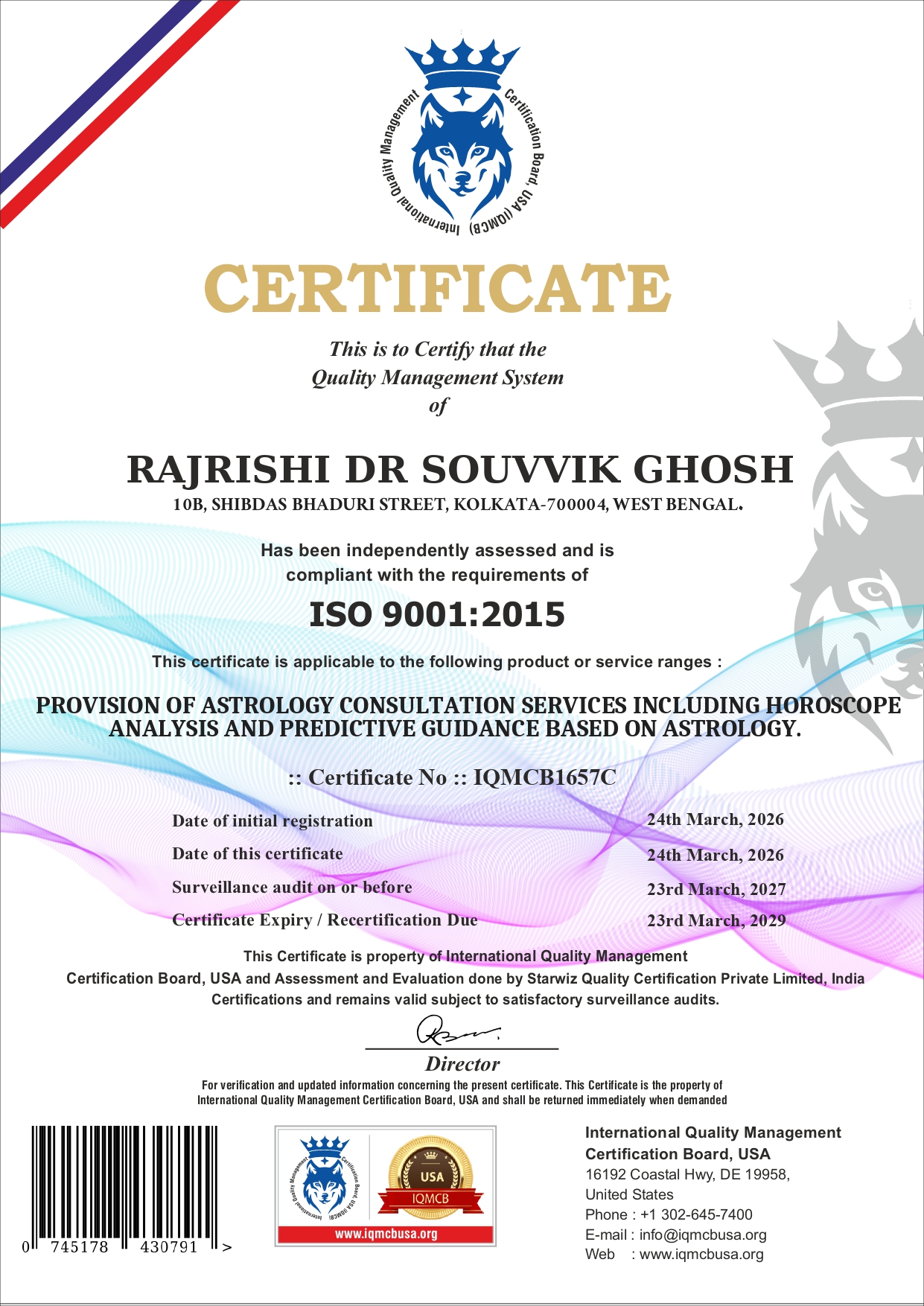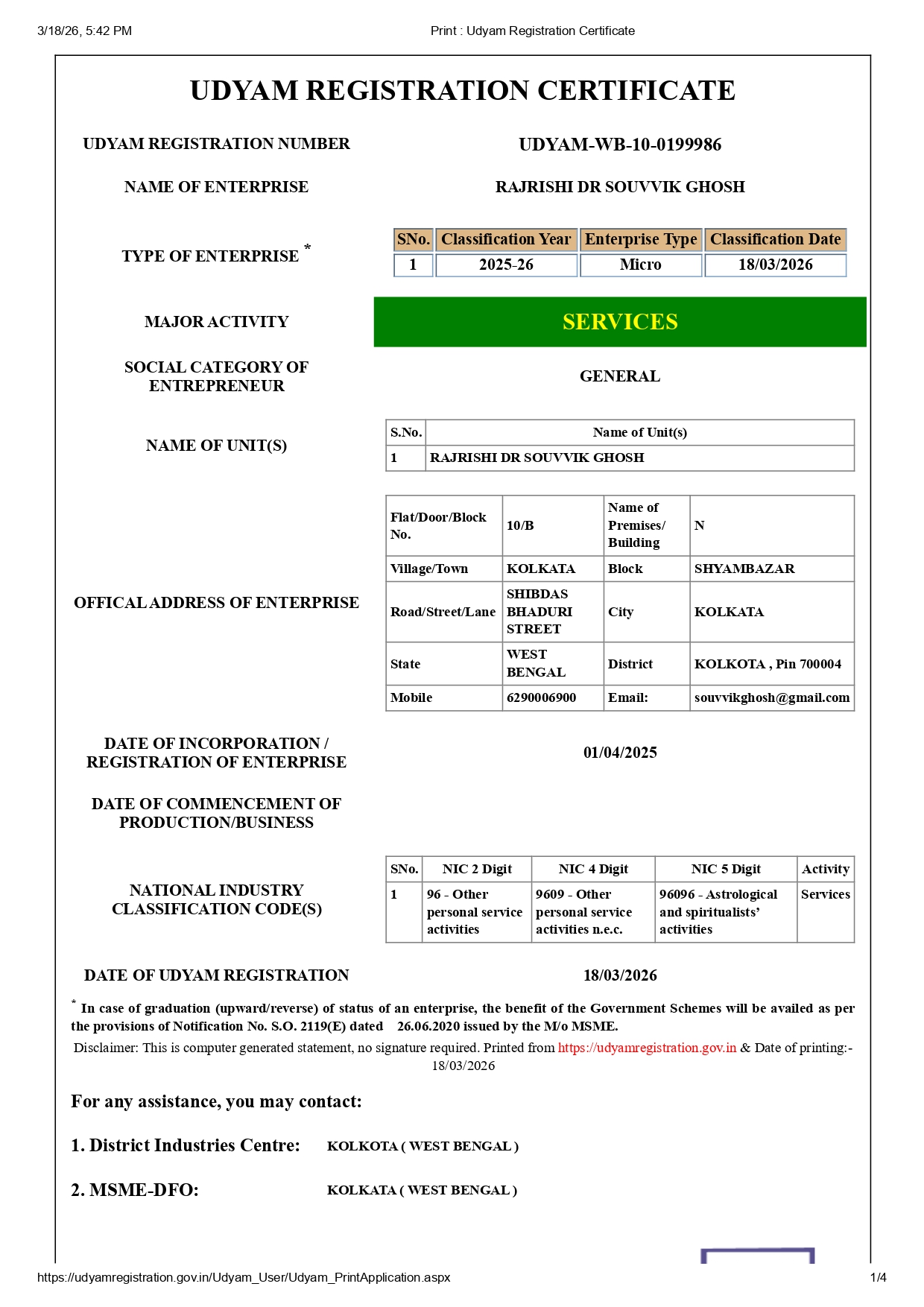 Dr. Souvvik Ghosh holds advanced academic qualifications in astrology and spiritual sciences.